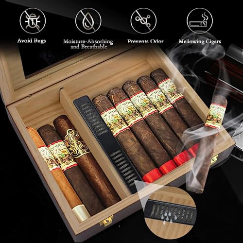 Cigar humidor with a cigar Humidor Box, Humidifier, Hygrometer, and the mini movable partition board can help you organize your cigars